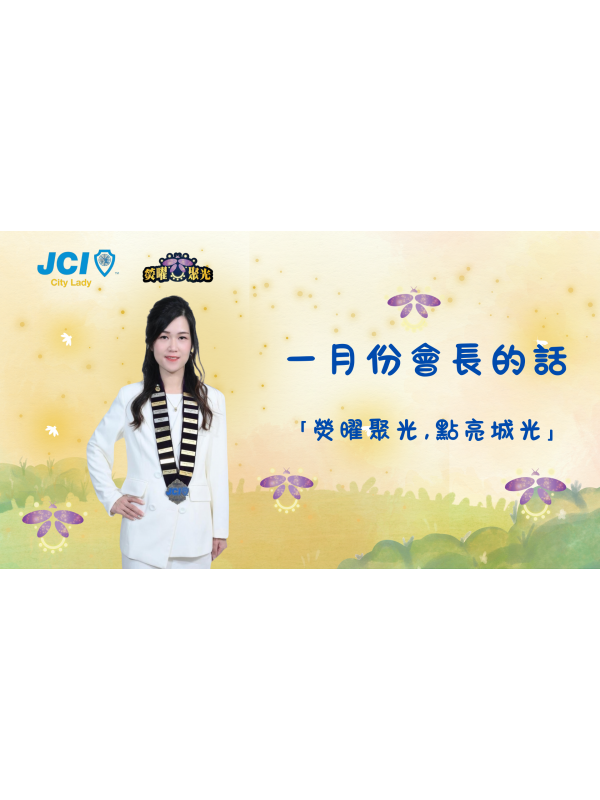 本人有幸承蒙會員與前輩提攜,當選2026年會長,深感榮幸!新的一年,城市女青年商會將繼續秉持「服務社會,訓練自己」的初心,為香港注入更多正能量。我們誠摯期待與本會會員、新朋友攜手並肩,一同實踐「熒曜聚光」的年度願景——匯聚每一道獨特的光芒,點亮和諧溫暖的城市,祝福更多女性!